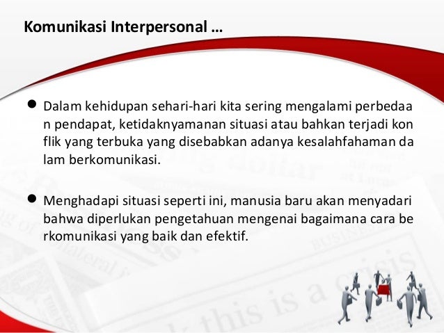 Psikologi manajemen kelompok 5 softskill deky ilham ramadhan 12514646 komunikasi interpersonal efektif dalam organisasi yang mencakup componential dan. Hubungan interpersonal perawat dengan perawat merupakan hubungan yang lazim dan terjadi secara alamiah. Rakhmat (2004) menyebutkan 3 faktor yang menghubungkan hubungan interpersonal dalam. Kegiatan komunikasi dengan tujuan tertentu terjadi dan berlangsung dalam hubunga.1 komunikasi interpersonal merupakan komunikasi diadik yang melibatkan hanya dua orang. Menurut potter dan perry (1993), komunikasi terjadi pada tiga tingkatan yaitu intrapersonal, interpersonal dan publik.